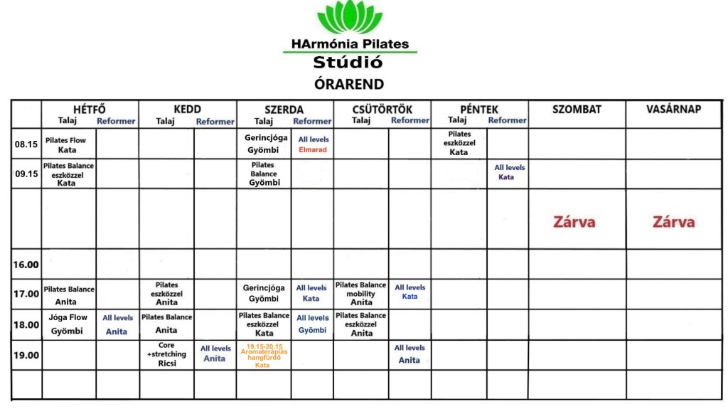 A Stúdió az első délelőtti, illetve délutáni órák előtt 15 perccel nyit!