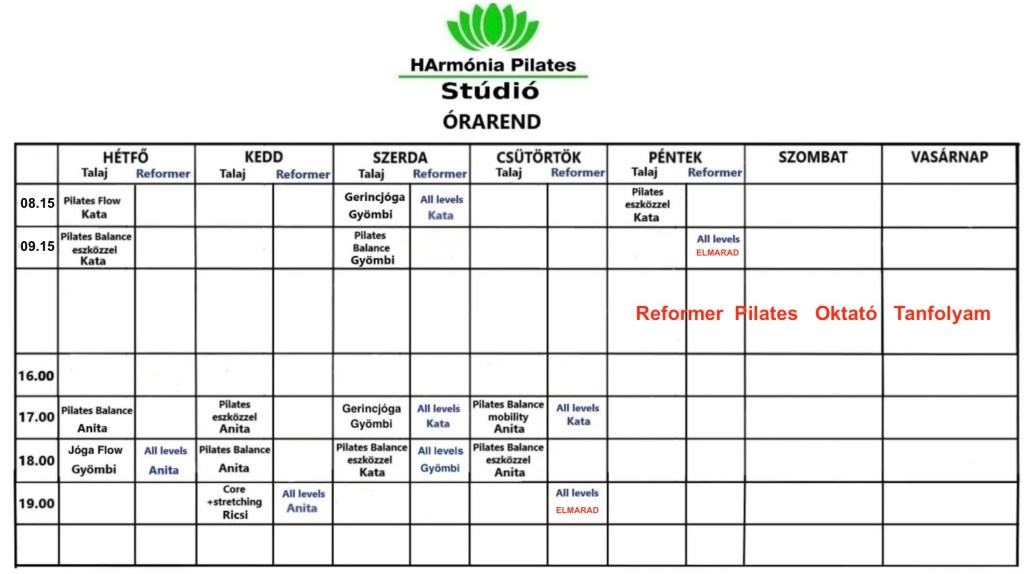 A kiscsoportos reformer terem maximális létszáma 4 fő. Bejelentkezni kötelező!